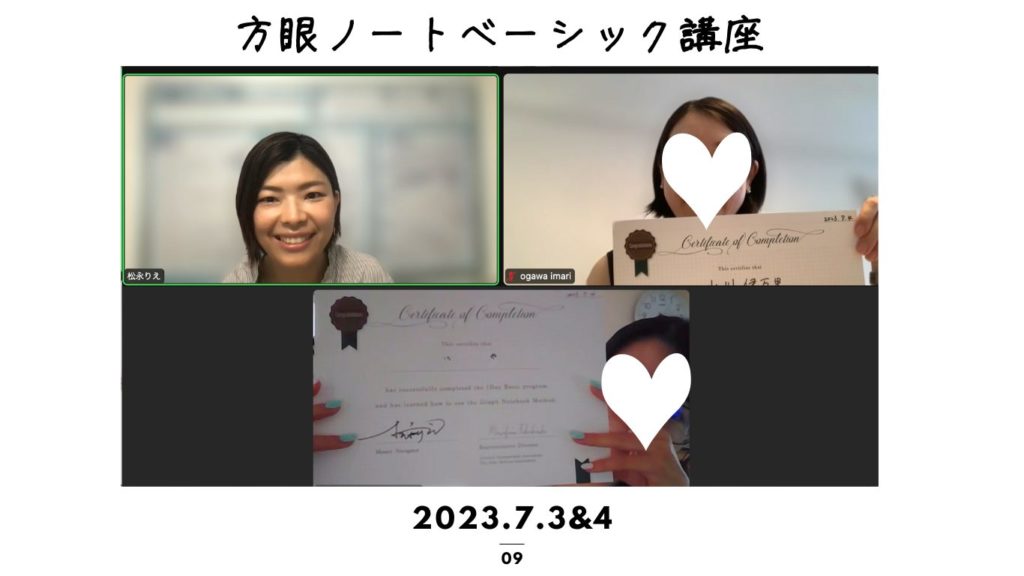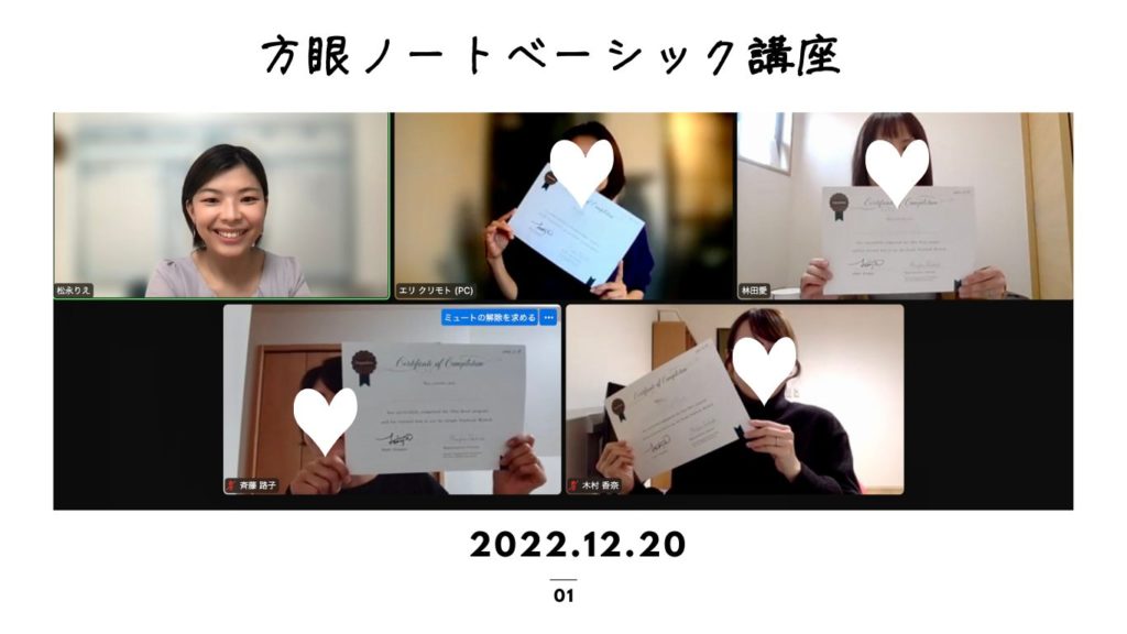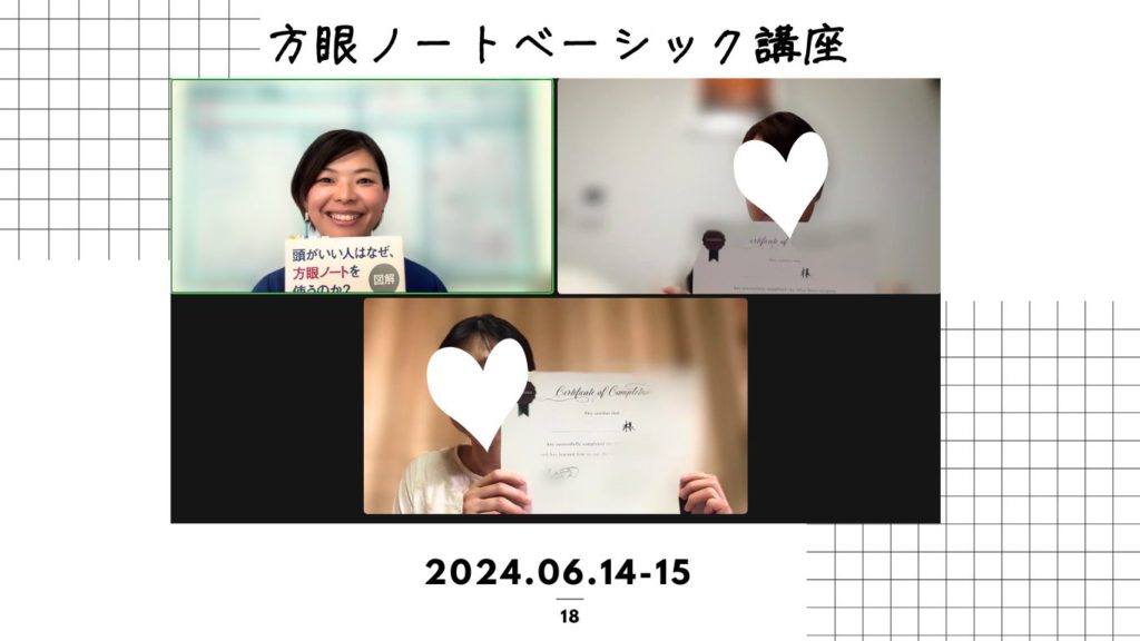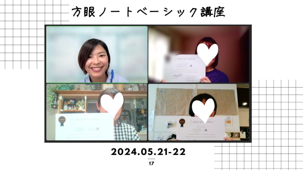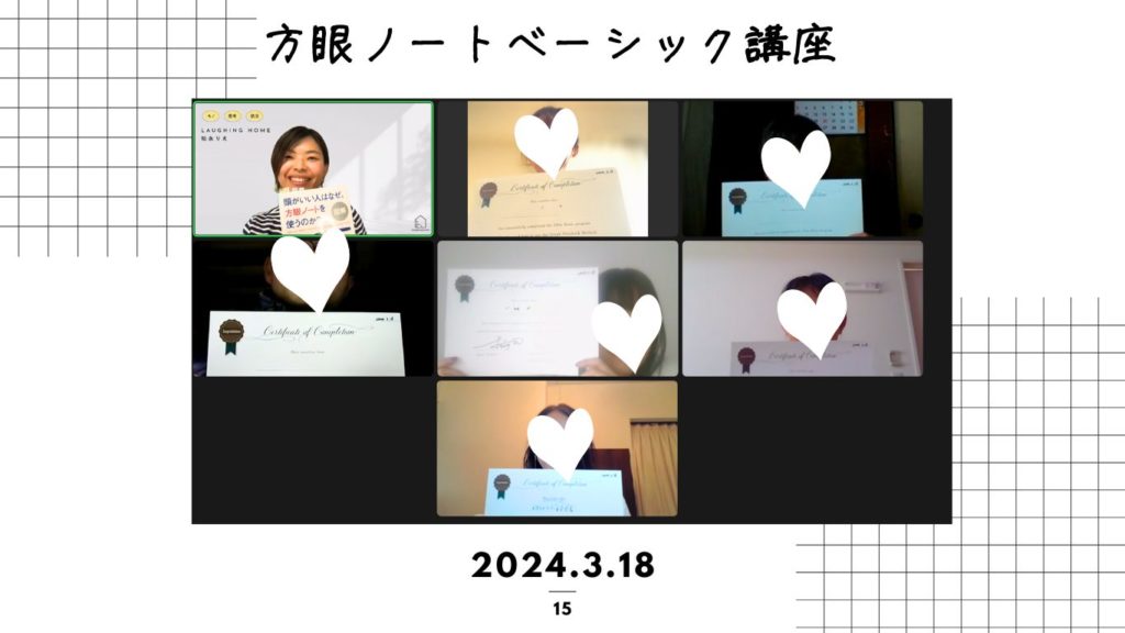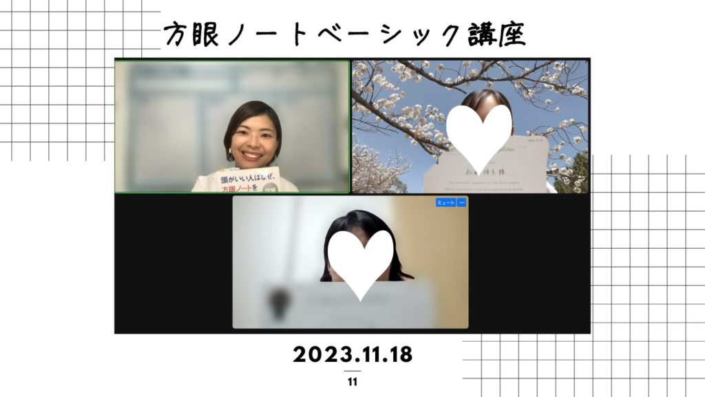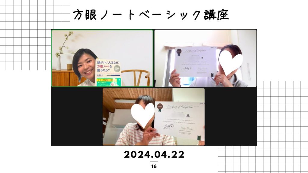 松永から受講していただいた方は、定期的に方眼ノートフォローアップ会を開催します(zoomを使います)