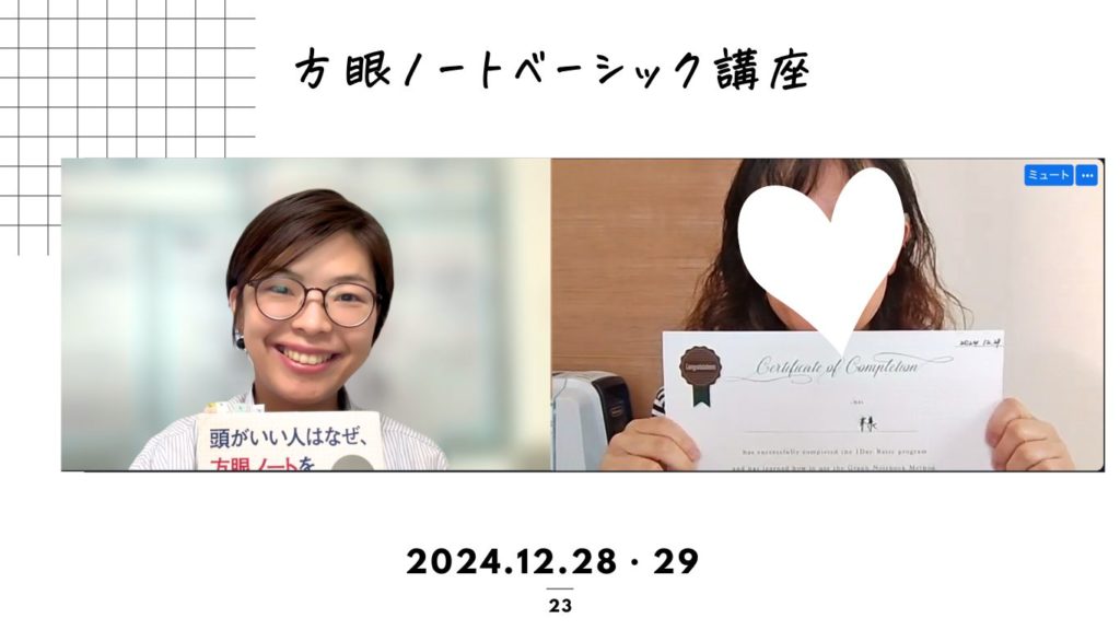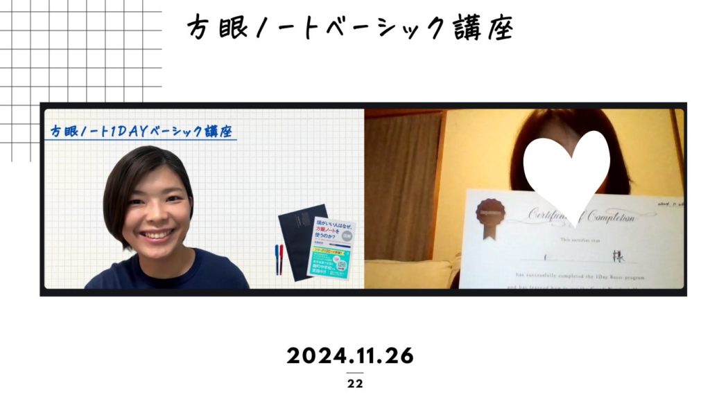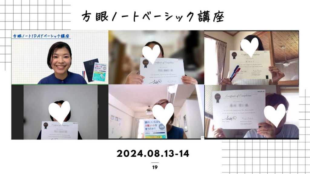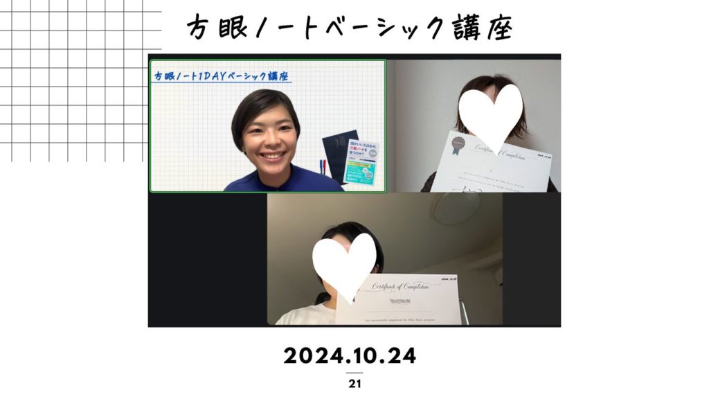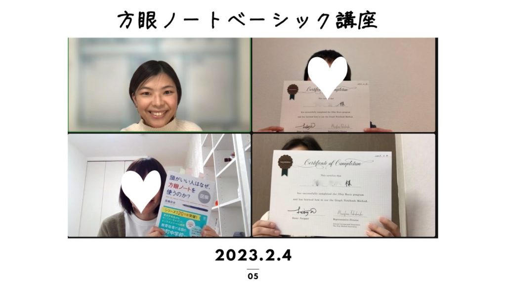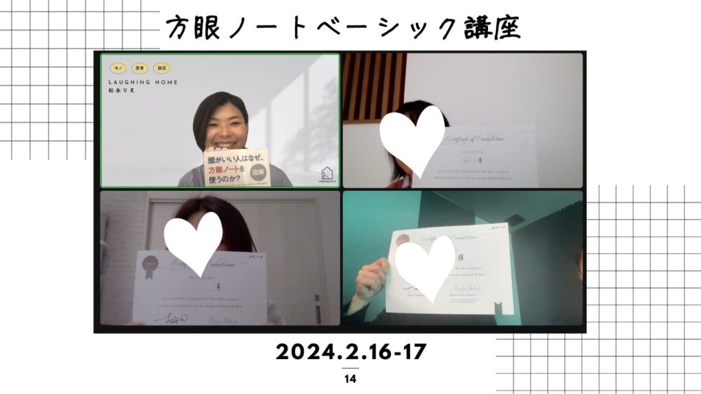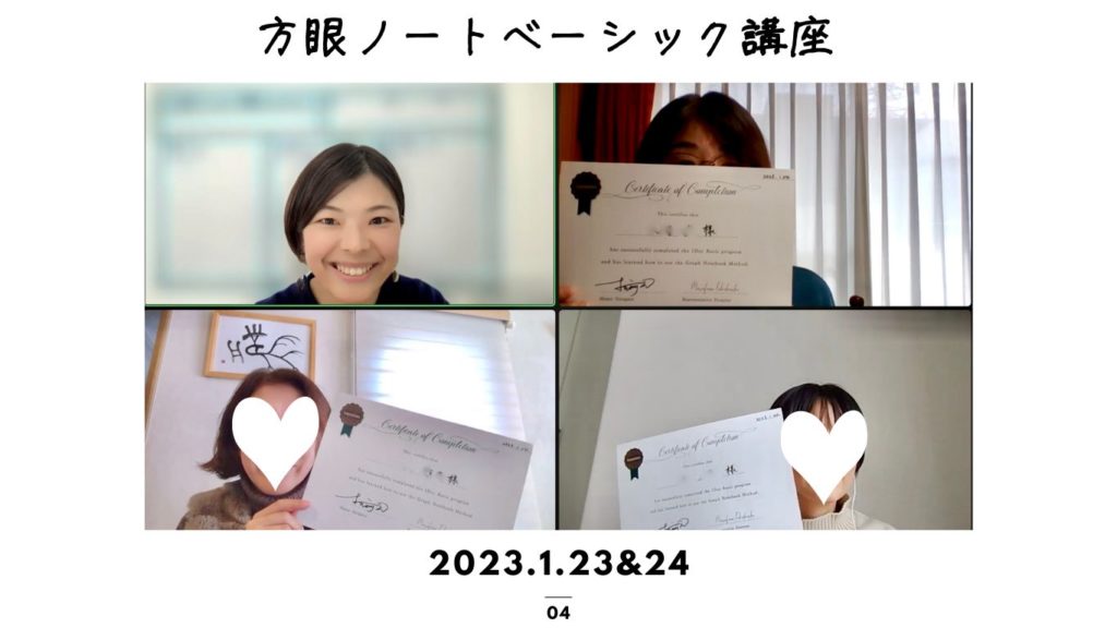 松永から受講していただいた方は、定期的に方眼ノートフォローアップ会を開催します(zoomを使います)